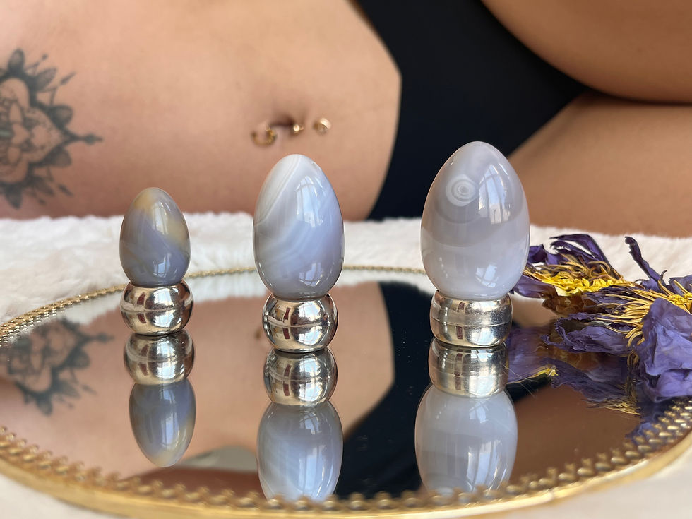 L’œuf de yoni est une pierre en forme d’œuf utilisée comme outil de résistance douce pour soutenir la tonicité du plancher pelvien et raviver la connexion à son espace intime.